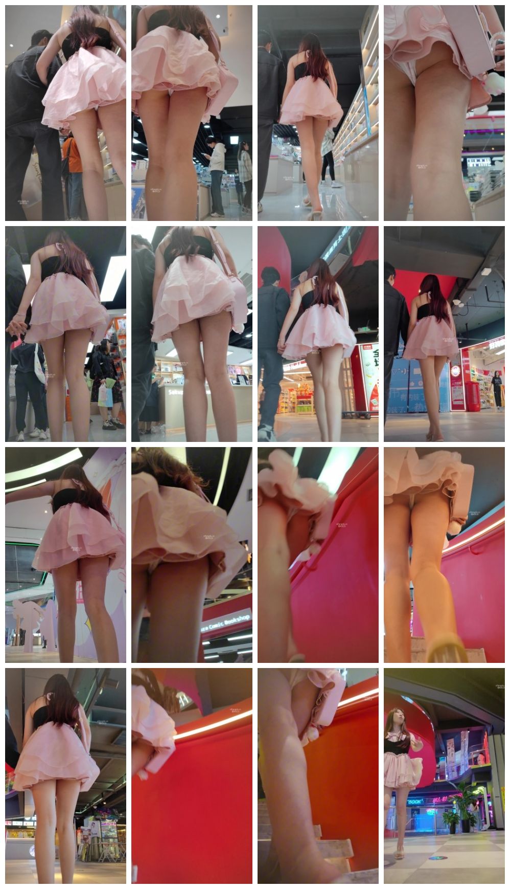 商场偶遇粉色连衣裙高跟凉鞋小姐姐,穿着性感 抄底裙底一次性粉色内内 屁股好看